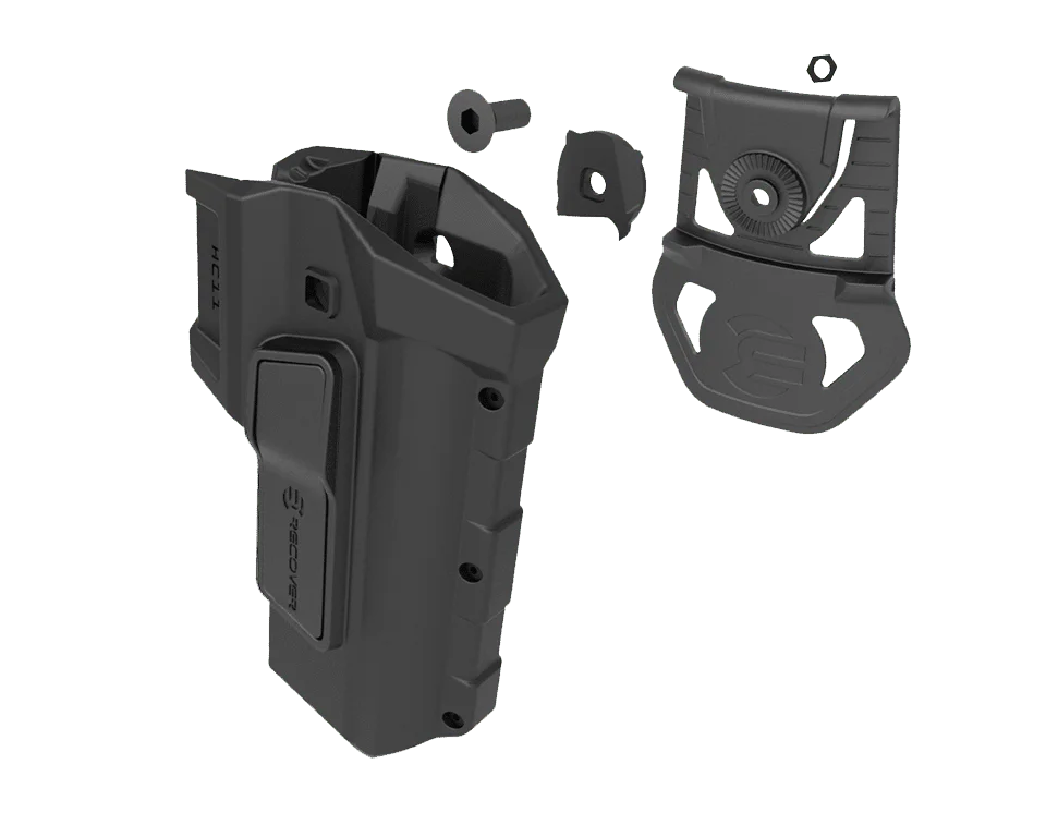 The Recover HC11 Passive Retention 1911 Holster is designed to hold any 1911 that uses the Recover CC3H or CC3P grip and rail system. The holster allows for a natural draw, and is compatible with most pistol rail mounted accessories on the market.