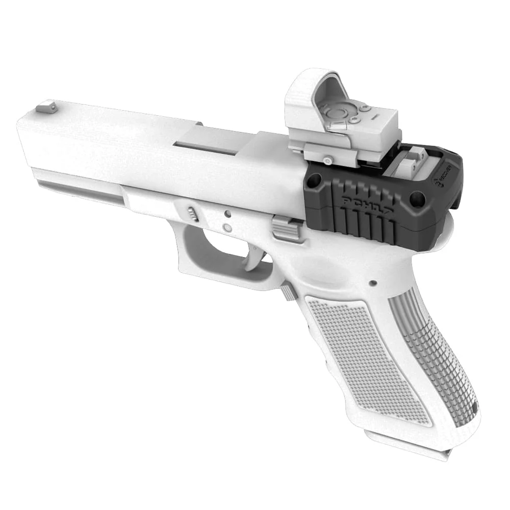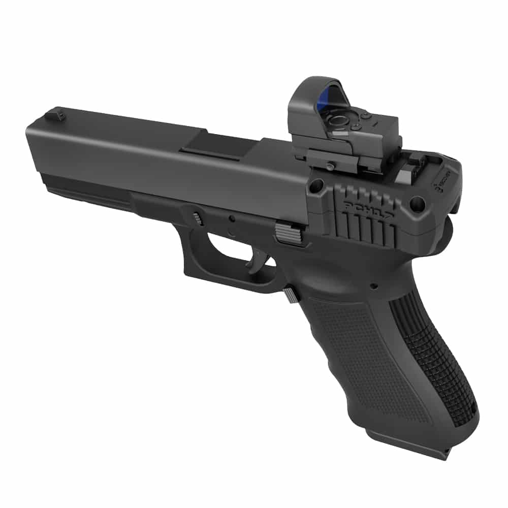 The PCH17 does not require you to cut out your slide in order to mount an optic. Simply mount your pic rail optic to the PCH and you are good to go! No pistol modifications required!
